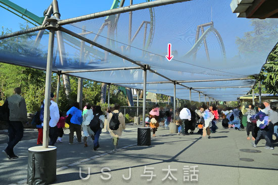 遠方から来ている親戚は夕方6時にパークを出ないといけない。というわけで、待ち時間表示が140分の入り口を入って並びました。そして実際に待った時間は180分!