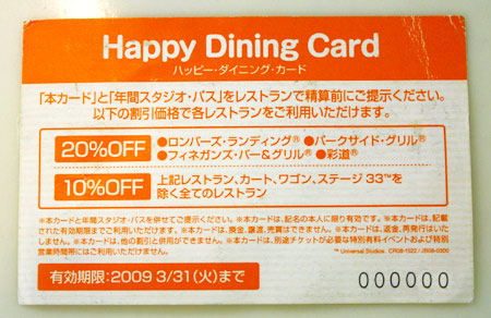 ここには何度となく書いているハッピー・ダイニグ・カードについて、