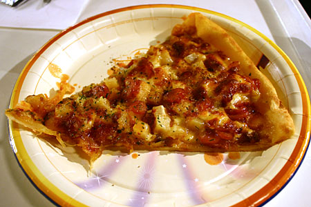 スライスのソーセージとポテトのカレーピッツァ
