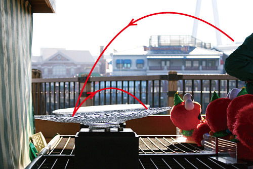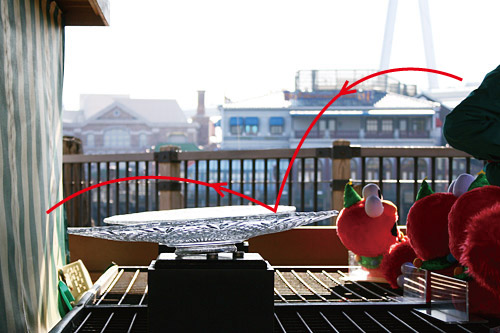 上の写真の赤線は、上手く乗ったときのコインの軌跡です。