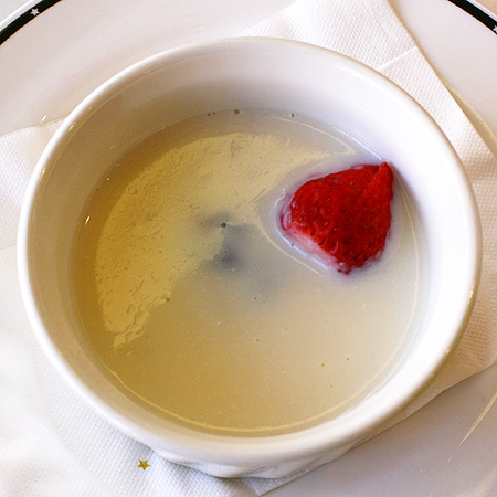 このぜんざいの中では、イチゴの酸味が必要なんです。