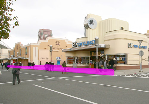 この特別鑑賞エリアは下の写真の半透明のピンクで示したあたり。