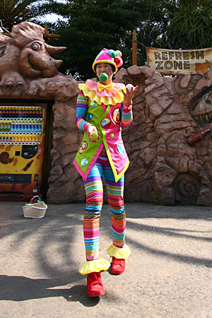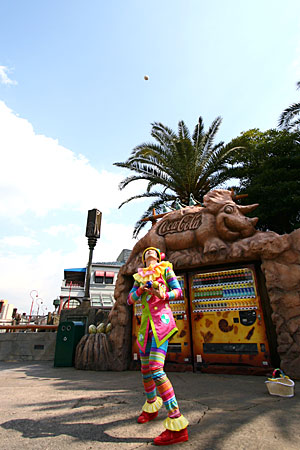 ハッピーステーション USJ アトモス 2009.03.162023.02.09 ドンキーコングカントリー入場確約券付ツアーはJTBだけ 今年からはじまった新アトモスの【ハッピーステーション】 ワタシはまだほとんど見ていないんです(汗) 何やらたくさんの出演者がいるようで、すべてを見るにはしばらくかかりそうな気配。 この【ハッピーステーション】にジャグリングをする人がいます。見た場所はジュラシックパーク。 ジュラシックパークの入り口の前に、自動販売機がありまして、そこに彼がいました。 このアトモスは、ワタシにとってヒジョーにありがたい存在になりそうです。