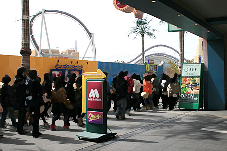 昨日の11時頃、チケットを購入する日手たちの列がJR側の大門をはるかに超えて、ホテル京阪ユニバーサル・タワーの入り口近くまで伸びていました。
