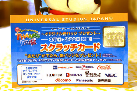 パーク内で指定の商品を買うとスクラッチカードがもらえます。