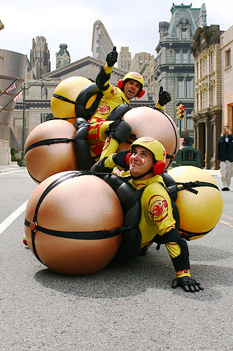 サービス精神旺盛です USJ アトモス 2009.03.242023.02.09 ドンキーコングカントリー入場確約券付ツアーはJTBだけ ハッピーステーションのバウンサーと呼ばれるお二人。 この日も、通りがかりにたまたま見つけました。 今回も、またまた終わりかけでして、ショーそのものを見ることができませんでした。。。 で。短い時間でも写真ただけでも。と思い、しゃがんでカメラを向けた。 するとですね。彼ら二人がワタシを見つけて、こんなポーズをとってくれました。 なかなかサービス精神旺盛なお二人のようであります。