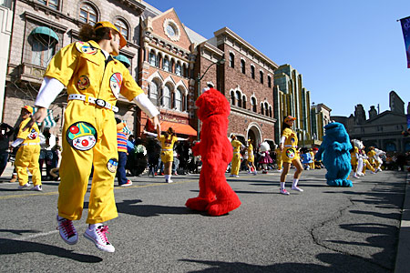キャラクターとキャストがハッピーステーションの音楽にのって進んできます。