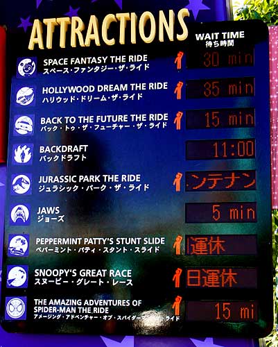 一番下のスパイダーマン・ザ・ライドは170分待ち。