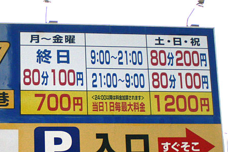当日最大、平日は¥700に対し、土・日・祝¥1200というふうに、