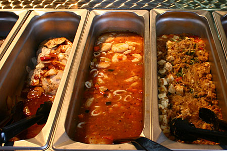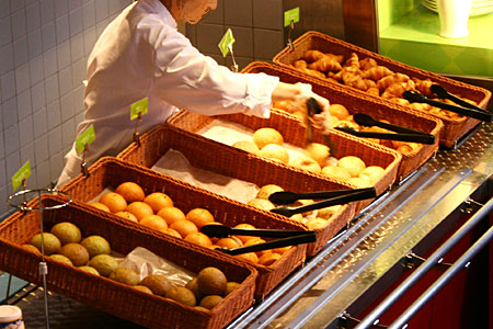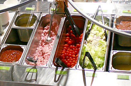 学生が列を作って並び、お皿に食材をとっていくのを何度かみたことがあります。