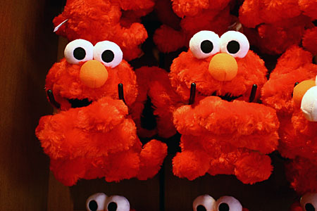 このエルモ君は、腕にしがみついてくるエルモ君。