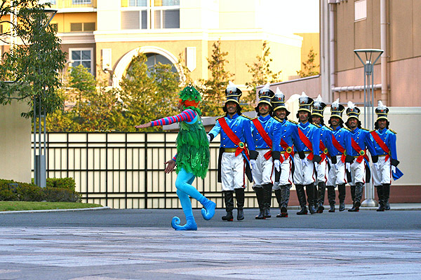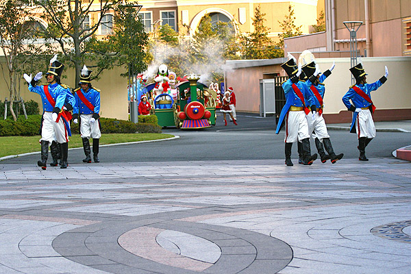 兵隊さんたちが行進を始めると、扉が開き汽車のフロートが登場してきます