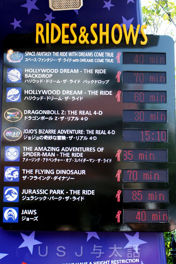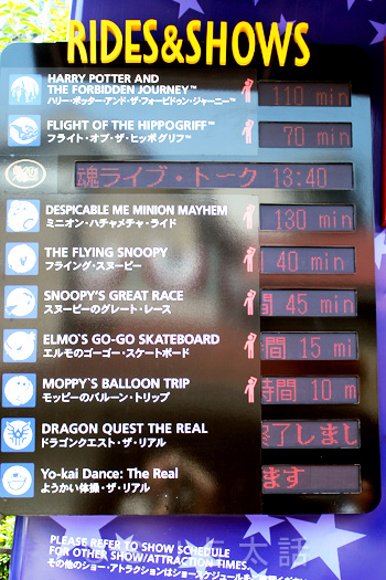 100分を超えているのはミニオンハチャメチャライドとハリー・ポッター・アンド・ザ・フォービドゥン・ジャーニーだけでした。