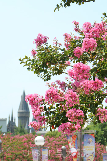 薄いピンクの花がモコモコと湧くように咲くのは、USJの夏の風物詩となっています。
