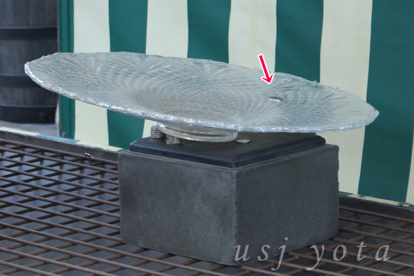 そのガラスの皿は下の写真のように二つ設置されていまして、斜めになっているのです。