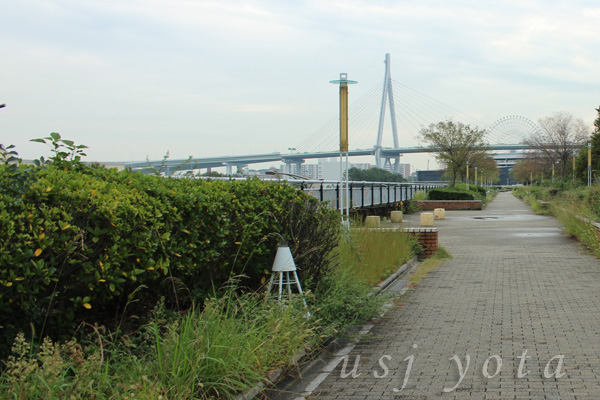 USJの最寄り駅、ユニバーサルシティ駅と、隣駅であり終点の桜島駅の上は遊歩道となっていて『桜島北公園』という名称になっています。