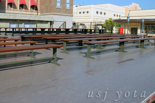 まずは、有料席から。有料席の一番の特長は、あたりまえのことですが有料エリア内に必ず入れるので場所の確保がされていることです。でも、場所によって見え方が異なります。一般の特別鑑賞エリアでは、一番舞台に近い場所が確保できます。この場合、ダンサーとの距離は、身近に感じることができますが、見上げてみることになり全体を見渡すにはしんどいかもしれませんね。もし一般の特別鑑賞エリアで見るのであれば、おすすめ場所は、車いすエリアの前の真ん中辺りがおすすめです。プレミア鑑賞エリアは、このブログにもありますように、一般エリアより高くなっており、後ろ側になっていますので、ショー全体を見ることができますが、舞台から距離ができます。また、今年からベンチが取り付けられましたが、雛壇になっていないので、後ろは見にくくなる可能性があります。