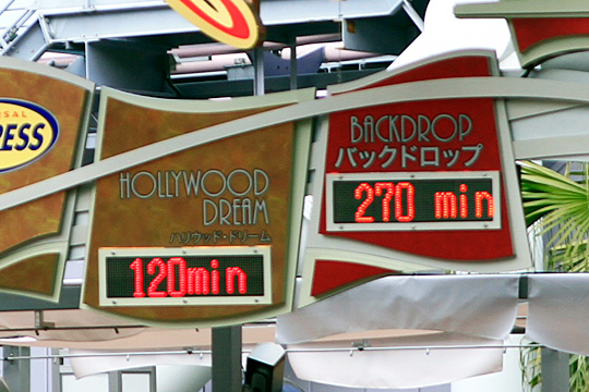 二つは別のアトラクションなのですが、天使のくれた奇跡3が開催される前後、ターミネーター2:3Dが運休する時間があるのです↓