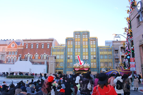 下の写真の赤い矢印部分がターミネーター2:3Dの出口です。