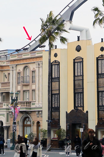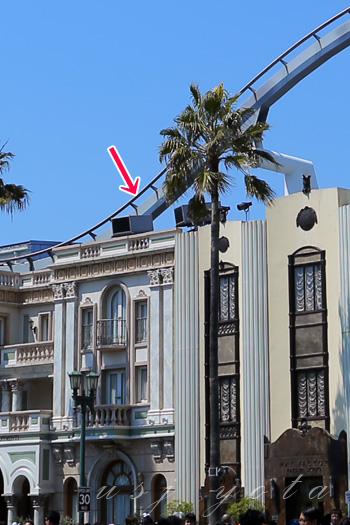 ハリウッドエリアのこの通りには、たくさんの投影機があり、ハリウッド・ドリーム・ザ・ライドのコースの下にもそれらしきものがありました↓