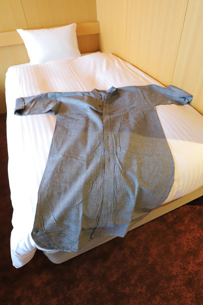 パジャマはこのようなタイプで、ズボンはついていません↓