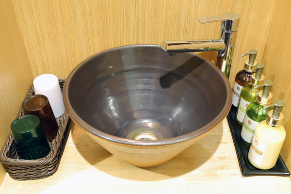 この洗面ね、陶器製でオシャレです。