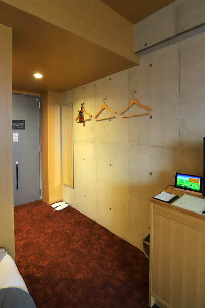 クローゼットはなく、ハンガーは壁に直に設置されています↓