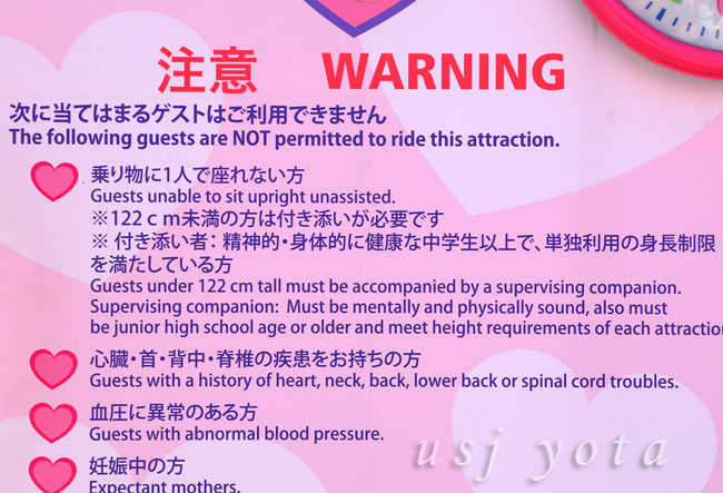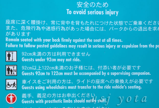 USJが定めた身長に達しない場合、対象アトラクションには乗れません。