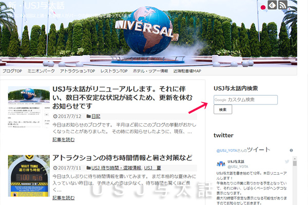そしてもう一つは、「新・USJ与太話」では、タイトルの横に「アイキャッチ」という写真が出てくるのですが、ここ最近のもの以外、表示されません。