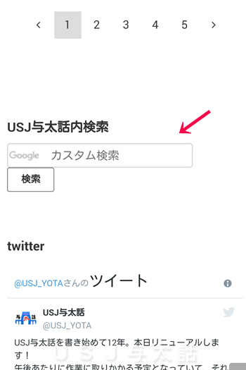 スマートフォンだとページの下のほうに、こんな「グーグルカスタム検索」があります↓