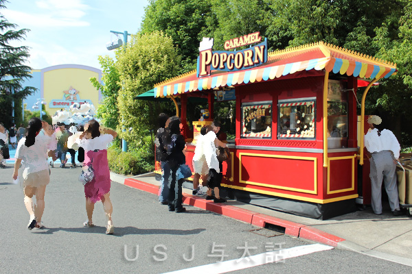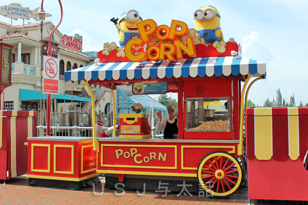 USJに入ってすぐの大屋根下のポップコーンカート↓