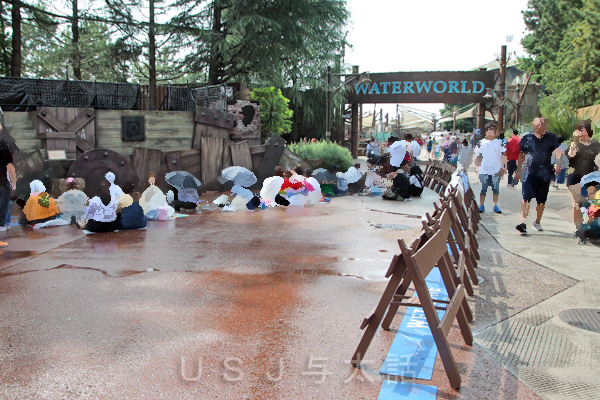 ショーが開催される前から場所取りで座っている人もいることから、ワンピース・ウォーターバトルのショーエリアとウォーターワールドに出入りする人との間に柵が設置されていて分けられています。