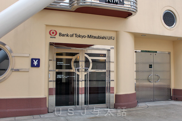 USJに入ってすぐにある大屋根下の左にあるショップ、「ユニバーサルスタジオストア」の手前を左に入っていくと、すぐ左側に「東京三菱UFJ銀行」のATMがあります。