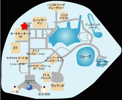 また、待ち列はほぼ屋内なのに、アトラクションは外というパターンもあります。