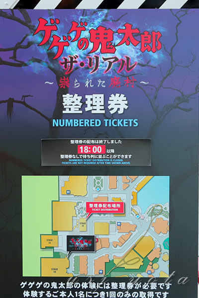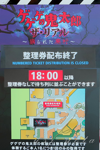 ゲゲゲの鬼太郎ザ・リアルのパーク内で配布される整理券配布終了後の情報が分かりにくいと、先月ブログで書きました。