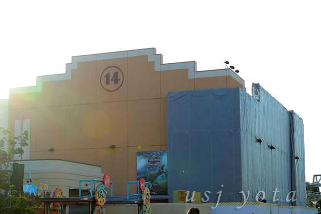 ラグーン越しにステージ14を見ると入り口の上も囲いで覆われていて、大掛かりな作業が行われていることがうかがえます。