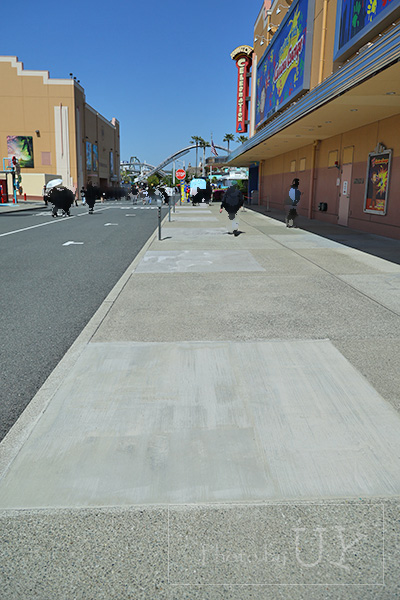 上のイラストを見ると、右がアトラクションの「プレイングウィズおさるのジョージ」、左がレストランの「スタジオ・スターズ・レストラン」の間の通りのようです。