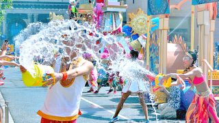 ウォーター・サプライズ・パレード2018では、4か所の「びしょ濡れ熱狂エリア」が設けられています。「びしょ濡れ熱狂エリア」では、エンターテイナーとゲストの水のかけあい、「ウォーターバトル」が行われます。パレードが始まった当初は完成していなか...