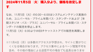 USJのチケット情報 年間パス・スタンダード2024年11月4日購入分より値上だが2カ月前から事前購入可能