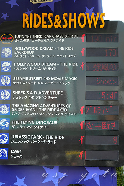 アトラクションの待ち時間を見ると以下のようになっていました。