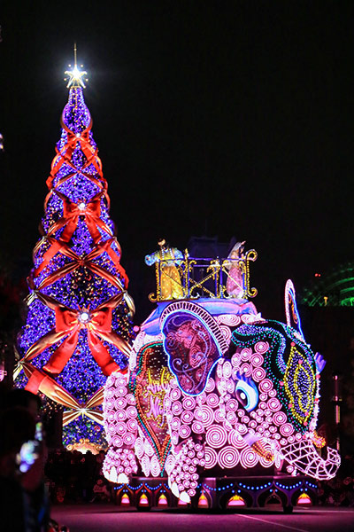 最後の、クリスマスツリーとナイトパレードのフロートの写真は、今見てもワクワクします。
