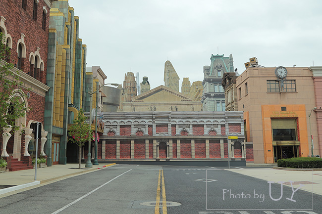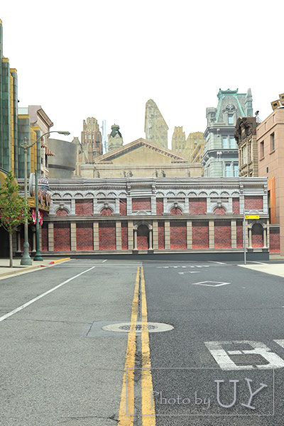 USJに入り、まっすぐに伸びる直線道路の突き当りはニューヨーク図書館の書き割りセットがあります。