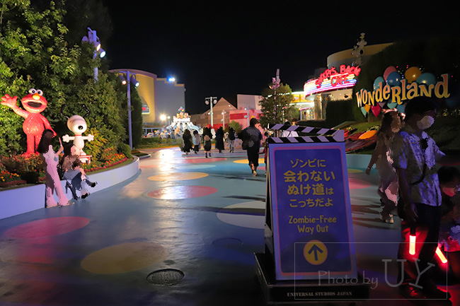 マスクフリーゾーンを移動できず、このようなルートになっているなら『ホラーナイト開始後、ゾンビに会わずにミニオンパークから退出することは不可能です』と注意書きが必要です。