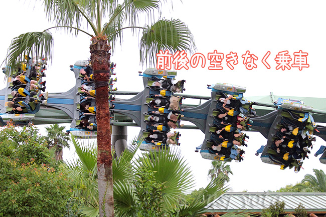 前後の間隔を空けたライド・ジェットコースター USJアトラクション