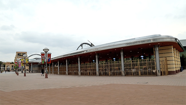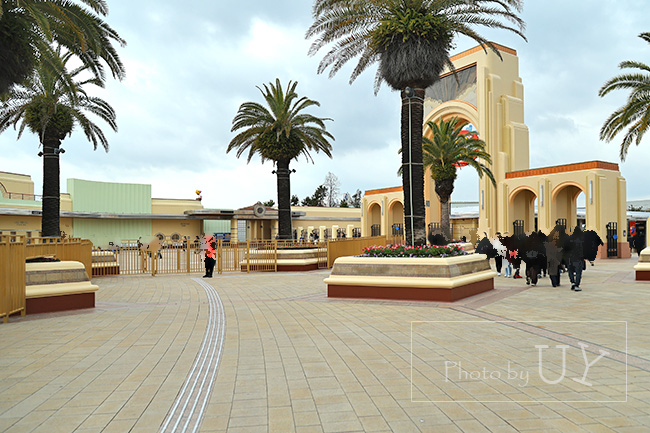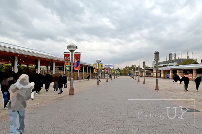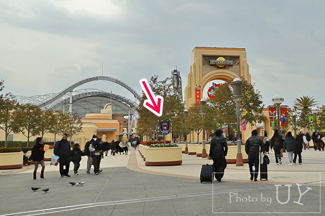 下の写真は、USJの最寄り駅『ユニバーサルシティ駅』よりUSJに向かうと見えてくる大門です。
