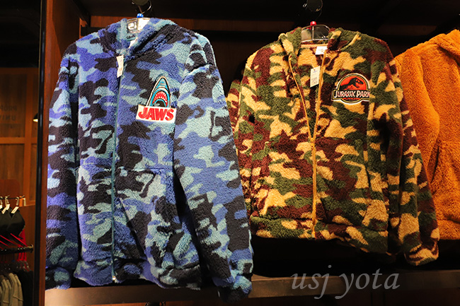 店内にジョーズやジュラシックパークのパーカーがあったので調べてみた所、パーク内とパークの外で値段は同じになっていました。