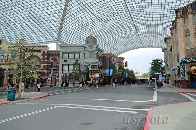 一昨年の台風21号で大きな被害を受けたハリーポッターエリアに入っていく通路にある木々です。