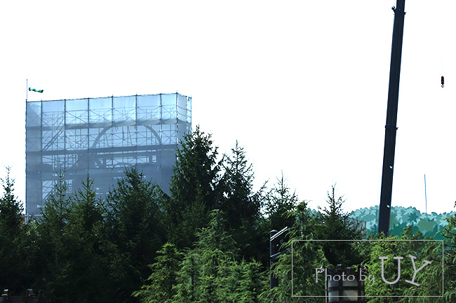 ハリーポッターエリアのホグワーツ城を見られる場所に行くと、重機が動いている様子が見られます。
