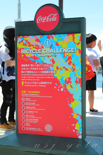 看板には『自転車を思いっきり漕がないとコカコーラが出てこない』と書かれてあります。
