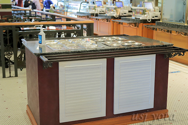 コロナ前のレストランでは、フォークやスプーン、紙ナプキンなどは自由に取れるブースが設けられていました。